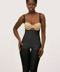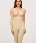 Ideal for Stage 1 recovery (0–2 weeks post-op), this below-the-knee bodysuit features a front hook & eye closure, open crotch, and adjustable shoulder straps for a secure, customized fit. Pre-formed closed buttocks offer a natural lift, while the high-compression midsection smooths the tummy—no padding required.